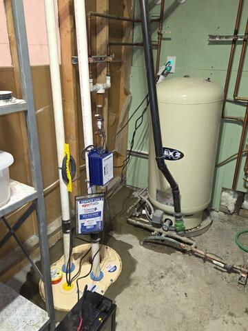 After installing a full perimeter drainage system around the basement, this homeowner needed a high quality sump pump to remove water out of their home, and away from their foundation. They chose our TripleSafe©, the world's most reliable pumping system. It provides triple protection against the three reasons why basements flood: pump failure, power failure, and a single pump being unable to handle the water volume in hard rain. TripleSafe© can remove up to 6,200 gallons of water per hour out of the basement, and includes a DC operated pump if power fails. Contact us today if you'd like a FREE estimate for your home!