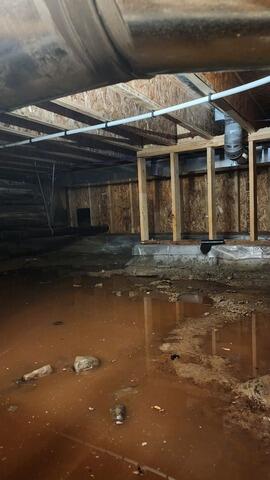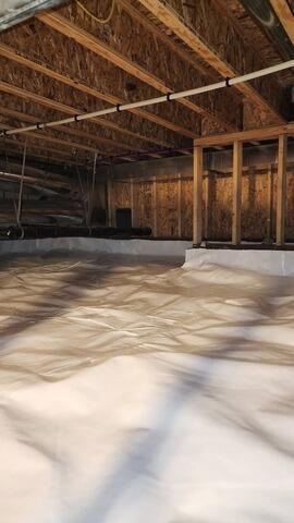 This crawl space was flooding, and the previous liner in place wasn't doing anything to prevent leakage. That's no surprise for us—our competitor liners tend to be thin, flimsy installations that are not long-term solutions for wet crawl spaces. However, our CleanSpace© crawl space encapsulation system has a heavy 20 mil thick liner that's over twice as thick as industry standard liners, and manufactured in 7 layers to optimize puncture resistance, flexibility, and brute tear resistance. We also installed our drainage matting to give additional durability, puncture resistance and a thermal break to the encapsulation system. After sealing all edges, seams, and pipe penetrations, this permanent installation provides long-lasting waterproofing benefits for the homeowners, significantly reducing humidity in the crawl space. Now, their home is safer and healthier than ever before!