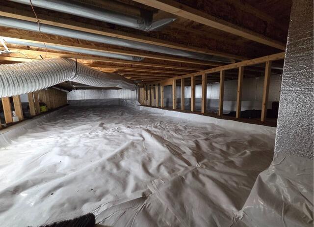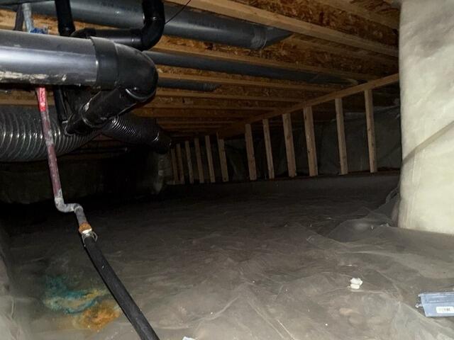 This moldy crawl space once had a thin, flimsy plastic liner that did nothing to protect the home from the water vapor beneath it. However, after calling the experts (us!), we were able to replace that flimsy liner with our powerful, 20 mil thick CleanSpace liner. Not only is it manufactured in 7 layers for optimal brute tear resistance, puncture resistance, and flexibility, but its antimicrobial protection helps discourage microbial growth as well. It permanently separates the earth from the home, helping the home stay dry and healthy for many more years to come.