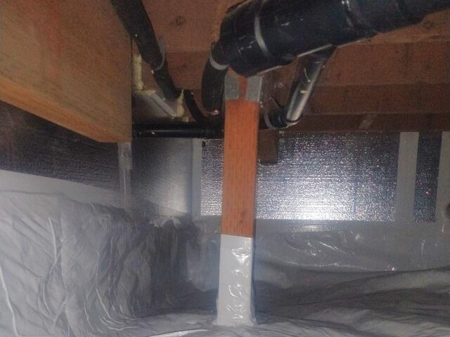 We insulated and encapsulate this formerly damp and drafty crawl space with our SilverGlo insulation boards and CleanSapce vapor barrier.