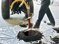 The liner will keep your garage floor clean as technicians use a power auger to bore holes where earth anchors will be installed.