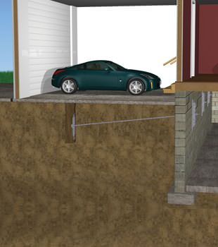During installation, holes are cut through the garage slab floor, and soil is augured out to allow for earth anchor placement. Next, holes are drilled through the foundation wall so that a long, threaded steel rod can connect each earth anchor to a steel plate that applies clamping pressure against the wall.